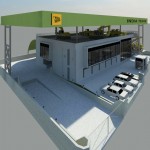 The clients who are an established dealer of construction equipment once again approached us for a showroom cum workshop to be designed and erected within a short time and within a relatively tight budget. While Urban Mosaic Design Studio had previous experience with the layout required for this kind of facility, we looked to collaborate with JLP Architects for their technical knowledge and project execution expertise for this scale of a project. PEB’s and Steel Construction were considered as options for quick erection. Also, the facility was being constructed on leased land so dismantling and re-assembling the same structure at a different site was also considered. However, after evaluation, due to the high initial costs required for a PEB or Steel structure, it was decided to go ahead with a Concrete Frame structure. However, in order to stick to the schedule, Urban Mosaic Design Studio suggested using a unique sandwich panel comprising of two 5mm thickness fibre reinforced cement sheet which does not contain asbestos, enclosing a lightweight core of Portland cement and binders and a mix of density modifiers aggregate. This panel was used as the infill instead of brick and cement mortar for the quicker erection of the superstructure. The project is currently under construction.